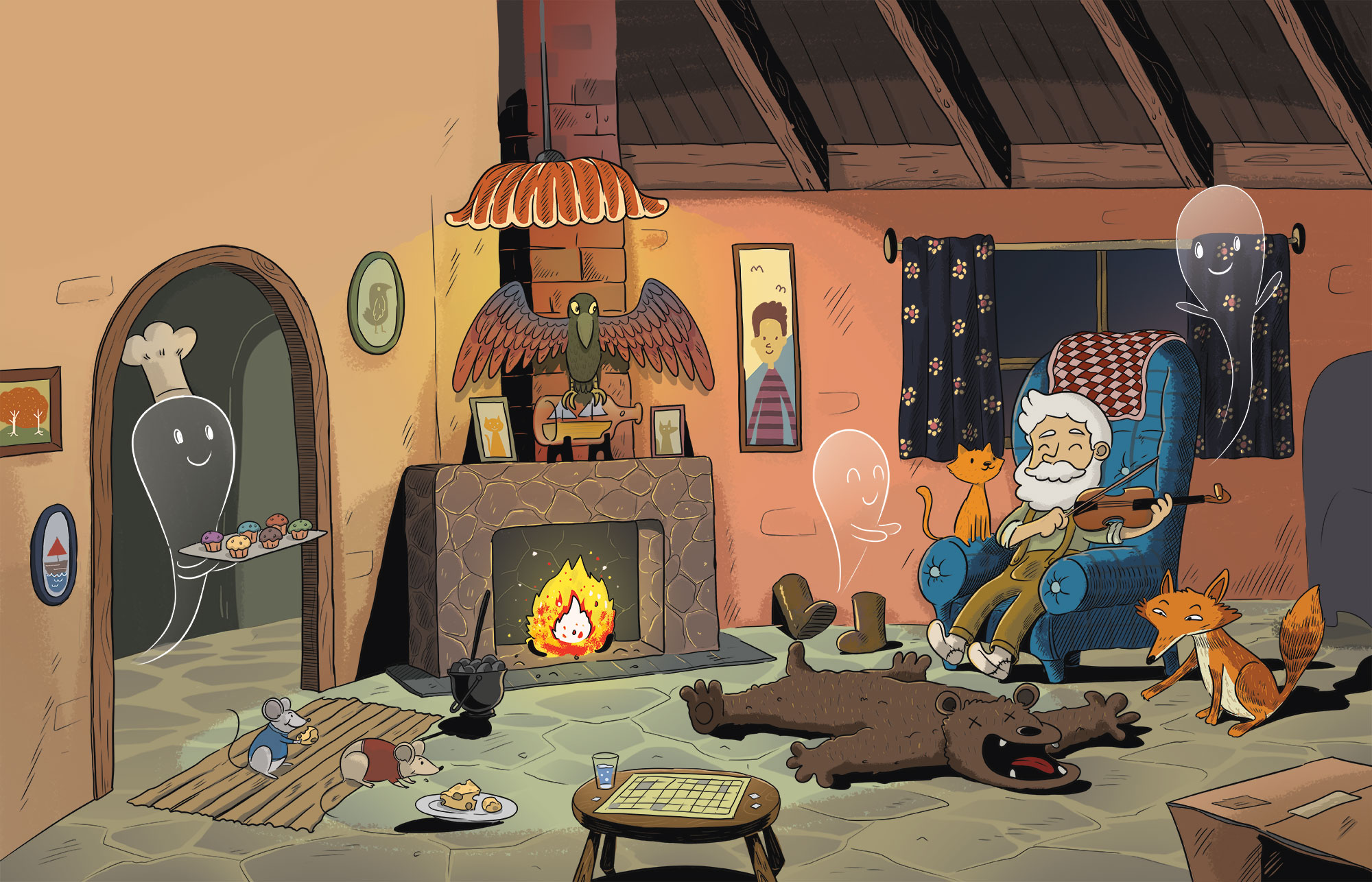 Old Dave inherits a lonely old house from his uncle—a nice enough place, if a bit lonely. One cold night he hears a voice: Ghastly ghosts in the old coal shed! At first he tries to ignore it, but he hears it again and again—Ghastly ghosts in the old coal shed! And when the fireplace runs out of coal, Dave has no choice but to brave the dreaded coal shed…and whatever dwells within. But Old Dave’s got an idea that just might work out for him AND the spirits.