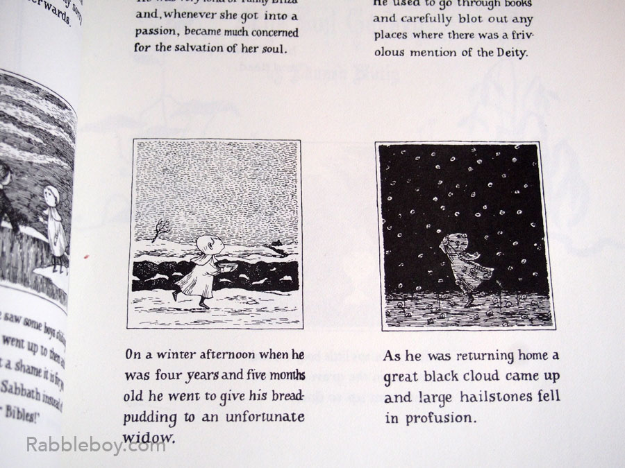 If you already purchased “Amphigorey: 15 books” then this is obviously the next step. It collects 20 of Gorey’s books (ones which are less popular). The printing is similar to “Amphigorey: 15 books” collection which is not stellar but will do the job. Some of the artwork are in color and some are also printed sideways.