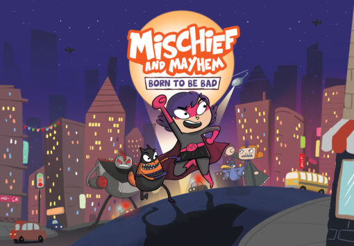 Dog Man meets Despicable Me in this crackling, hilarious middle grade graphic novel series from author-illustrator Ken Lamug, starring Mischief and Mayhem—a dynamic duo that falls into supervillainy after they’re kicked out of superhero camp.