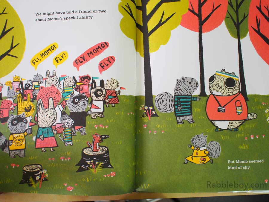(Pages 1-7) The kids have been anticipating the arrival of Cousin Momo, a flying squirrel. Everyone in the neighborhood welcomes his arrival but he seemed kind of shy.
