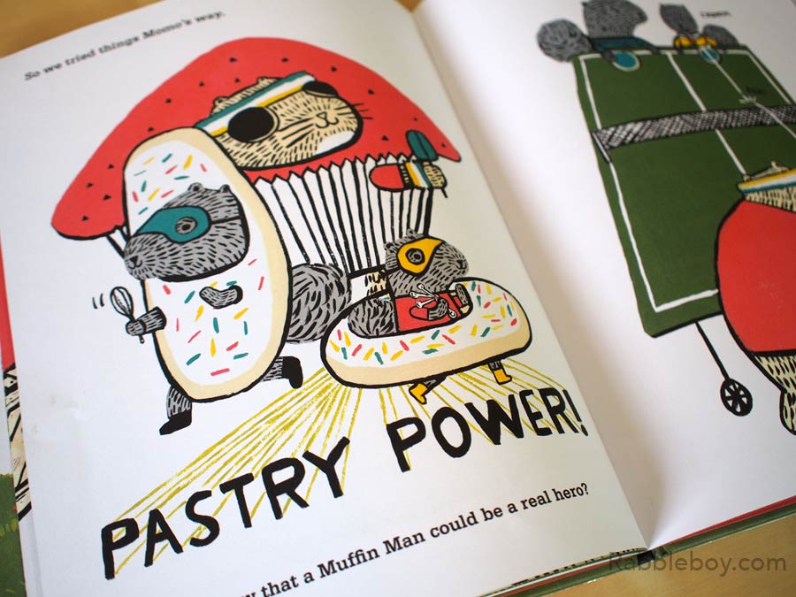 (Pages 8-13) To break the ice, they decided to play games. Momo’s super hero outfit seemed kind of weird. They instead tried to play acorn-pong and then hide-and-seek, but again, Momo seemed out of place.