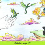 Her experience reading books like “Eragon” inspired her image, which features dragons flying among clouds, as well as a seated girl reading a book. The freedom she felt reading books was an inspiration, she said.