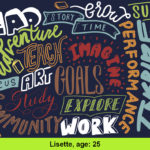 Nunez, a 2014 graphic-design graduate of The Art Institute of Las Vegas, took her design in a different direction by working with typography. The words “read,” “focus,” “adventure,” “community” and “adventure” help to weave her design together.