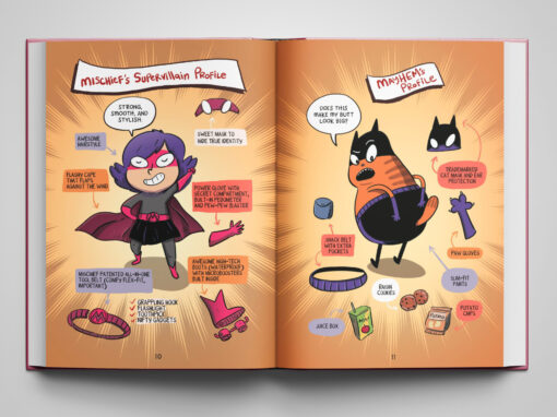 The farthest on the track was my PB dummy for MISCHIEF THE SUPEVILLAIN. It’s about a kind-hearted protagonist on her quest to be a superhero, except she didn’t have superpowers. She gets booted out of superhero school and ends up being a supervillain who saves the city. It is a story about friendship, transcending labels, and finding your own hero voice.