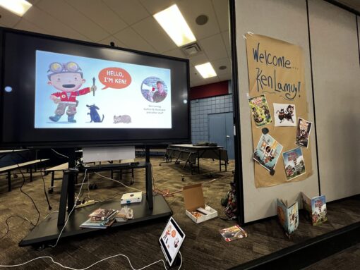 Some authors like to dress up as mascots, superheroes, or other eye-catching outfits. After trying it out a few times, I’ve decided to dress for comfort, especially when doing multiple daily presentations. I think the kids have fun either way as long as I bring the right energy.