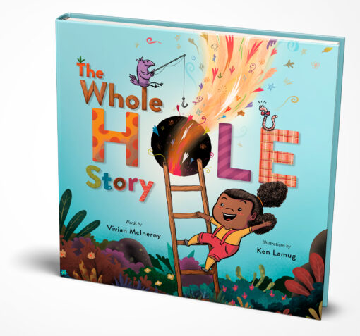In Vivian McInerny’s playful debut, readers will fall in love with wonder again as Zia imagines what might happen if the hole in her pocket became big enough to fall right through. The Whole Hole Story is perfect for readers looking for a fresh take on the classic Harold and the Purple Crayon.